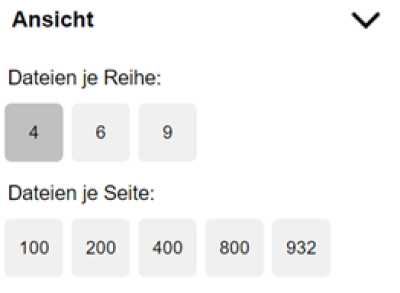 2.3.6 Ansicht Unter “Ansicht” treffen Sie die Entscheidung, wie viele Dateien in einer Reihe und auf einer Seite angezeigt werden sollen und somit auch wie groß die Dateien abgebildet werden sollen.