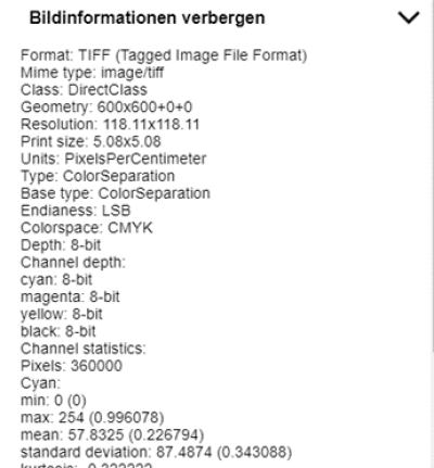 Nun werden Ihnen jegliche Bildinformationen angezeigt. Durch Klicken auf den Button “Bildinformationen verbergen” verschwinden die zusätzlichen Informationen wieder.