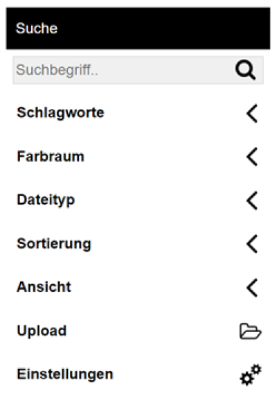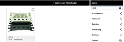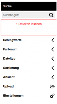 2.3.1 Suchbegriff In dem Feld “Suchbegriff” können Sie nach spezifischen Dateinamen suchen. Die Ergebnisse der Suche werden Ihnen dann auf der linken Seite des Bildschirms angezeigt, wo vorher alle Bilder/Videos in dargestellt wurden.